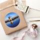 Pegatina fotográfico redondo de molinos de viento históricos iluminados al atardecer durante la Hora Azul con reflexión en el agua en un paisaje en Kinderdijk, Holanda.