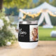 Black White Mom Established Script Black Photo Design. Replace the photo with your own of your kids and change the years to the years you became a mom. Use the edit tool if you want a second photo added instead of the one photo two times.