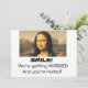 Mona Lisa, invitación a la boda las 5 horas del día, los 7 días de la semana. Dice: "Sonríe, nos vamos a casar y estás invitado!