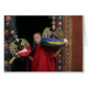 Monje joven con los gorras negros en el dzong de Paro, tarjeta adaptable