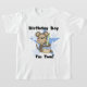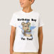 Camisetas de niño de 2º cumpleaños, trajes para el cuerpo, tarjetas, pegatinas, imanes, bolsas, y más con un mono lindo muchacho con un quequito helado azul y un texto que dice "¡Niño de cumpleaños, soy dos!".