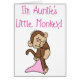 Un pequeño mono marrón adorable con una manta rosada y el texto rosado que me lee "son Little Monkey de tía!" ¡se ofrece en las camisetas del chica de nuestra tía, pegatinas, tarjetas, y más!