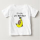 Un mono chica en un gran plátano amarillo con camisetas de 2º cumpleaños, pantalones de vestir, tarjetas, pegatinas, imanes, bolsas de té y más.
