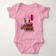 Un lindo diseño de primer cumpleaños para camisetas de primer cumpleaños, trajes para el cuerpo, tarjetas, franqueo, imanes, y otras prendas de cumpleaños y artículos de regalo con un mono, una torta de chocolate con guarnición rosa, un globo rosado, y texto que dice "¡Soy 1!"