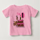 Un lindo diseño de primer cumpleaños para camisetas de primer cumpleaños, trajes para el cuerpo, tarjetas, franqueo, imanes, y otras prendas de cumpleaños y artículos de regalo con un mono, una torta de chocolate con guarnición rosa, un globo rosado, y texto que dice "¡Soy 1!"