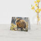 Adorable quokka sentada entre hermosas flores blancas y amarillas en esta tarjeta de felicitación en blanco.