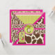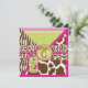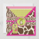 Impresiones de Safari, jirafa, cebra y cheetah y un patrón de punto de polka, con monos colgando en una vina y etiquetas de apariencia 3D, arcos, tarjetas de invitación de quinto cumpleaños.