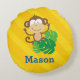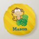 almohada redonda personalizada con un mono gracioso en la jungla con fondo de rayas amarillas. Diseño divertido y estilizado para niños. Regalo monogramado por personalizado. Para no tener personalización, elimine el texto de ejemplo y deje en blanco.