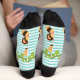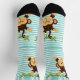Mono lindo colgando en un calcetines a rayas de vino Añade algo de encanto a tu armario con estos adorables calcetines con un mono lindo balanceándose en una vid contra un telón de fondo de rayas turquesas. Estos calcetines son perfectos para darle un toque divertido a tu ropa, ya sea que estés en casa o que salgas. Son de materiales suaves y duraderos que garantizan comodidad y estilo durante todo el día. Estos calcetines son un regalo delicioso para los amantes de los animales o para cualquiera que disfrute de un poco de brillo en su armario.