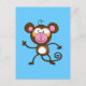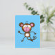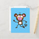 Trae sonrisas y diversión con esta adorable y personalizable postal con un mono personalizado dibujado a mano con grandes mejillas rosadas, brazos juguetones y una cola rizada. Con un brillante fondo azul, este alegre diseño es perfecto para los niños, los amantes de los animales, las aulas, las invitaciones de cumpleaños, o simplemente enviar un feliz saludo. Ideal para profesores, padres o cualquier persona que disfrute de una obra de arte caprichosa y desenfadada. Este mono lúdico agrega alegría a cualquier mensaje que envíe. Personalízalo con tu propio texto en la parte posterior para crear un saludo divertido y memorable!