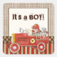 "Mono Retro Red Sock, Sellos De Ducha De Niño". Este sello o pegatina de anuncio de nacimiento o Baby Shower puede ser personalizado si lo desea. Presenta un adorable mono calcetín en un camión de motor de bomberos de coches a pedal con su confiable perro dálmata mirando. Obra acuarela pintada por la artista y diseñadora con licencia internacional Audrey Jeanne Roberts, copyright. com com