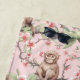 Esta toalla de playa tiene un toque de mono en un fondo rosa. Se puede personalizar con un nombre haciendo clic en "personalizar esta plantilla".