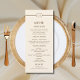 Elevate your table setting with this personalized, Minimal Cream Christian Wedding Menu Card, featuring a minimalist, lined design and an elegant organic oval shape that frames the couple's monogram in the center. The chic brown typography and flowing script font stand out beautifully against a classic cream background, creating a refined balance of modern simplicity and timeless elegance. Perfect for a simple, modern, God-centered wedding, this understated menu card with a meaningful bible verse on the back, adds a sophisticated finishing touch to your special day.