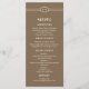 Elevate your reception tables with this personalized, Minimal Brown Christian Wedding Menu Card, featuring a refined, minimalist, lined design and an organic oval shape at the top with the couple's elegant monogram displayed at its center. The chic cream typography and delicate script font stand out beautifully against a classic deep taupe background, creating a timeless look. Perfect for a simple, modern, God-centered wedding, this menu card, with a meaningful bible verse on the back, brings a sense of understated sophistication to your table setting.