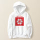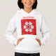 Monograma Hoodie - 20XX "Alegría! Amor! ¡Paz!", letras y copo de nieve blanco sobre el patrón rojo. ¡Feliz Navidad y Feliz Año Nuevo! XMAS Hoodie decorado con Navidades símbolos mágicos, regalos de vacaciones de invierno. Diseño gráfico de moda original. Ropa y zapatillas > Niños > Chicas > Ropa > Cosas y sudaderas. Decoración de vacaciones de invierno. Diseño de archivo con plantilla de texto. Personalízalos añadiendo nombre. Decoración gráfica en dos lados.