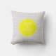 Esta almohada tiene líneas grises del galón con un monograma amarillo con varias líneas de texto de encargo.