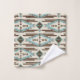 Características determinadas atractivas de esta tres toalla del pedazo un modelo azteca al sudoeste bonito en tonos de la aguamarina azul, del marrón, y del moreno. La toalla de baño grande tiene una frontera marrón a juego en la parte inferior. Su monograma es en aguamarina en aguamarina y bandera alineada marrón. Muy atractivo, y personalizado apenas para usted.