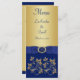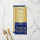 Esta elegante carta floral de color azul real y oro a precios razonables tiene una cinta IMPRESIONADA y un medallón IMPRESO con imitación azul y dorado que se corresponde con la invitación a la boda que se muestra a continuación. Está diseñado en una tarjeta de rack con un frente brillante y acabado mate en la parte posterior. Si desea que una tarjeta de menú en papel de invitación coincida con sus invitaciones, o si tiene alguna solicitud de artículos o cambios adicionales, envíe un correo electrónico a niteowlstudio@gmail.com con su solicitud.