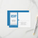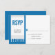 Esta tarjeta de respuesta RSVP de Bar Mitzvah, coronada por un gran monograma, utiliza un ilustracion gráfico de un tallo blanco, gris y negro (el chal de oración judía) con tzitzit contra azul brillante para pedir a los invitados que respondan a una celebración especial para el Bar o B'nai Mitzvah. Disponible en colores alternativos con productos coincidentes.