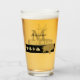 ¡Este vaso de cerveza de barril es distintivo y memorable! Presenta una imagen de bisonda de silueta dorada sobre un fondo negro dramático. Al lado del bisonte hay símbolos de traje de tarjeta dorada en el mismo rectángulo negro. Su monograma está en oro coincidente y su nombre está escrito en escritura negra sobre él. Ambos lados del vidrio tienen el mismo texto e imagen. ¡Perfecto para sus noches de póker! Asegúrese de ver las copas de varios animales salvajes en nuestra tienda.