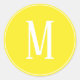 Pegatina redondo clásico con monograma blanco sobre fondo amarillo. Personalizar al pegatina con sus iniciales o iniciales, color de fondo, entre otras opciones.