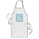 Monograma personalizado de delantales largos para hombres mujeres y niños. Pares de barbacoa personalizados con nombre inicial. Diseño original para cocineros y apasionados de la cocina. Parrillada monogramada / parrilladas de hornear en beige caqui, blanco estándar y amarillo brillante. Color de la letra de personalizable. Fondo de patrón de zigzag chevron. Impresión de banda Zig Zag azul de moda. ¡Haz uno para mamá o papá! Carta elegante de tipografía.