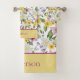 Hermoso juego de toallas de baño amarillas, blancas, verdes y púrpuras. Monogramas éstas con su apellido o iniciales. ¡Hace un gran regalo de boda o actualiza su baño! Disponible como conjunto o se vende por separado. Incluye toalla de baño, toalla de mano y paño de lavado.