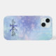 Un bonito diseño azul violeta con copos de nieve y músculos goteando desde lo alto. Monograma con tu apellido inicial y tu nombre. Monograma doble