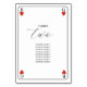 Un único diseño de boda de estilo de cartas en monograma. Un diseño impresionante que utiliza elementos de las cartas de juego para crear un diseño de fondo boda único. Un elegante monograma de pareja de bodas de corazón rojo. Un diseño de número de tabla de boda de cartas de juego tipo con elementos modernos. También hay disponibles invitaciones de boda coincidentes y otros artículos de papelería. Personalizar el número y compra cada número de tabla individualmente según cuántos números de tabla necesite.