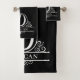 Elegante toalla de baño dividida en dos, monocasco D sobre fondo negro. El color de fondo se puede cambiar fácilmente haciendo clic en "Personalizar esta plantilla" para "Hacer clic en el personalizar más adelante", luego a la izquierda debajo de las capas encontrará el enlace de color de fondo. ¡Haz clic en él y cambia tu color!