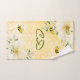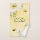 Fondo amarillo y blanco con un patrón de peine de miel. Decorado con flores tropicales de color amarillo claro, color crema, hibiscos y abejas con burbujas alegres. Añadir sus propias iniciales de monograma. Letras verdes.