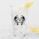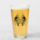 Un cangrejo ilustrado, extraído de la vista superior, con un estilo estampado. Las garras se abren, las piernas se extienden y la parte superior de la cubierta es un espacio blanco para un monograma.