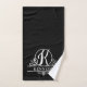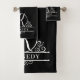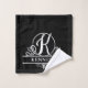 Elegante toalla de baño K con monograma dividido sobre un fondo negro. El color de fondo se puede cambiar fácilmente haciendo clic en "Personalizar esta plantilla" para "Hacer clic en el personalizar más adelante", luego a la izquierda debajo de las capas encontrará el enlace de color de fondo. ¡Haz clic en él y cambia tu color!