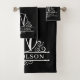 Elegante carta monograma dividida N toalla de baño fijada en un fondo negro. El color de fondo se puede cambiar fácilmente haciendo clic en "Personalizar esta plantilla" para "Hacer clic en el personalizar más adelante", luego a la izquierda debajo de las capas encontrará el enlace de color de fondo. ¡Haz clic en él y cambia tu color!