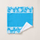 Patrón de damascos florales de color azul y blanco brillante con un monograma personalizado.