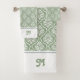 Elegante patrón vintage de damascos florales en sabio y blanco con monograma de personalizable. Puede cambiar el color de fondo verde de salvia con el patrón de damasco blanco para hacer de este diseño uno de los tipos.