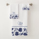 Elegante patrón vintage de damascos florales en azul marino y blanco con monograma de personalizable.