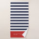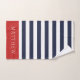 Este conjunto de toallas de baño personalizado hechas a medida tiene un patrón de rayas horizontales preppy en azul marino, rojo y blanco. Personalízalo con su nombre de monograma y texto inicial u otro texto personalizado. Utilice las herramientas de diseño para elegir cualquier color de fondo, editar los tipos de letra y los colores del texto o cargar sus propias fotos para crear un conjunto único de toallas de baño personalizado para que coincidan con cualquier decoración del baño. El conjunto incluye una toalla de baño, una toalla de mano y un paño de lavado o un tamaño de toalla individual según sea necesario.