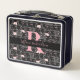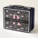 Cute Black Pink Kitty Cats Monograma Metalizado Lunch Box. Personaliza añadiendo tu nombre, inicial y Disfruta!