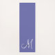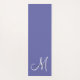Estera personalizada de yoga periwinkle monocromática con diseño de tipo de letra de guión en un fondo de efecto fotográfico de lino gris falso impreso. Estilo tipográfico de moda. Periwinkle es el color de tendencia para 2022.