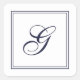 Monograma elegante de guión con pegatinas cuadrados de borde doble. Blanco con texto azul marino.