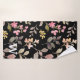 juego de toallas de baño con monograma de patrón de hojas botánicas rústicas acuarela , juego de toallas de baño con hojas negras elegantes y vintage verdes con flores rosas .