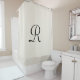 Esta elegante cortina de ducha tiene un fondo blanco roto en un patrón burlap de textura falsa. El monograma es negro. Una decoración casera sencilla y elegante, para un boda o para el ama de casa. Todos los derechos reservados © 2015 Alan & Marcia Socolik.