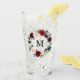 Tumbler de vidrio monograma con una flor acuarela de color rosa rosa rubor, borgoña y flores navales con hojas verdes y acentos folláricos. Personalice el tumbler añadiendo su monograma. ¡El tumbler floral hace un gran regalo personalizado!
