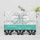Estas hermosas invitaciones de boda serán perfectas para invitar a sus invitados a una boda de verano o de invierno. Este versátil diseño con color de acento verde turquesa o verde mezclilla con diseño Damasco blanco y negro y un Monograma Inicial y los Nombres de Novia y Groom son totalmente personalizable. Además, elija entre una variedad de fuentes y hermosos papeles para hacer FABULOUS sus invitaciones de boda! Diseño de Elke Clarke ©2011. Gráficos con licencia para uso comercial