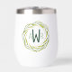 La vegetación acuática forma una corona de marco y proporciona un marco elegante para su nombre, iniciales o monograma en este elegante diseño de vaso de vino térmico. Utilice la plantilla proporcionada para agregar sus iniciales como se muestra. Busque ID667 para ver otros productos con este diseño.