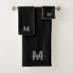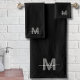 Toalla de baño personalizada con monograma de iniciales y nombre en blanco y negro. Agrega un toque de elegancia y personalización a tu baño con este elegante juego de toallas de baño. Este conjunto incluye una toalla de baño, una toalla de mano y un paño de lavado, cada uno con una inicial gris en negrita y un nombre en escritura blanca en el monograma en la esquina inferior derecha. Perfectamente diseñado para un aspecto refinado y sofisticado, estas toallas son ideales tanto para uso decorativo como funcional. Este conjunto es un regalo considerado para cumpleaños, inauguraciones, fiestas y bodas cuando se personaliza con un apellido. También es una excelente opción para un estudiante universitario que se va a la vida en la residencia o un niño que se muda por primera vez. Ya sea para uso personal o como un recuerdo especial, este juego de toallas con monograma agrega encanto y practicidad a cualquier hogar.
