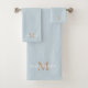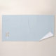 Toalla de baño moderna, elegante y de moda con un azul polvoriento con monograma tostado y tipografía de nombre blanco. Los colores se pueden personalizar a su elección