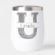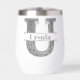 Sip en estilo con el Tumbler de Vino Termal del Monograma de Plata Inicial Personalizado U. Este elegante tumbler presenta un monograma personalizado "U" y su nombre en un impresionante diseño plateado, lo que lo convierte en el regalo perfecto para cualquier ocasión. Hecho con acero inoxidable duradero e aislado, mantiene tus bebidas calientes o frías durante horas. Ideal para aventuras al aire libre, trabajo o simplemente para relajarse en casa, este tumbler es a la vez funcional y elegante
