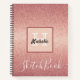 Girona y elegante. Un patrón purpurina de gradiente de oro rosa. Personaliza y agrega tu nombre. Un marco con espacio para su nombre y letra de monograma. Letras blancas y negras. Título de personalizado: Libro de esbozo. Para mantener los cambios en el título, sólo elimine el texto de ejemplo, deje los espacios o la emoji delante y después del texto. Un cuaderno con páginas en blanco para dibujar, hacer garabatos o tomar notas para chicas, chicas adolescentes y mujeres.